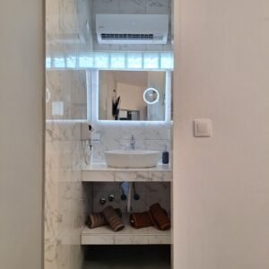 Each bedroom includes its own bathroom with a shower, ensuring privacy and convenience for all guests.